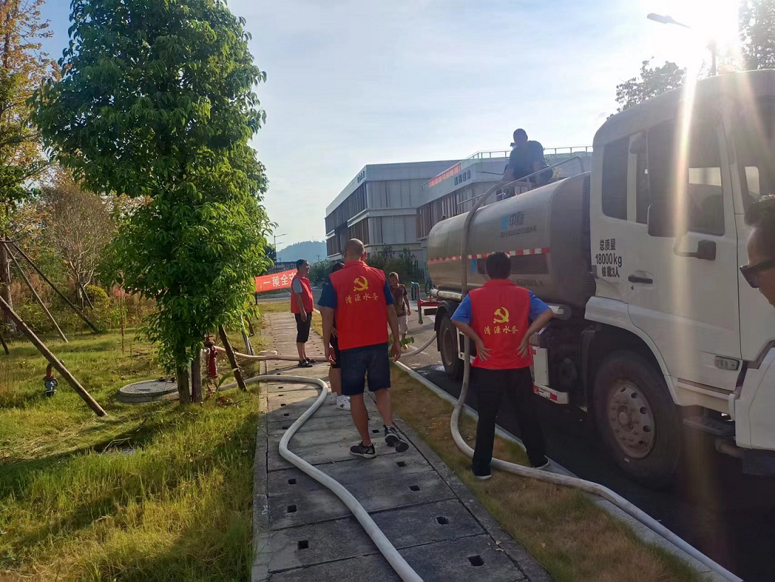 接到情況匯報后,制水分公司領(lǐng)導(dǎo)高度重視,迅速聯(lián)系共產(chǎn)黨員服務(wù)大隊黨支部協(xié)調(diào)送水車輛,并組織支部黨員及青年職工組成“送水小分隊”,向周壩村村民聚集點免費送水。