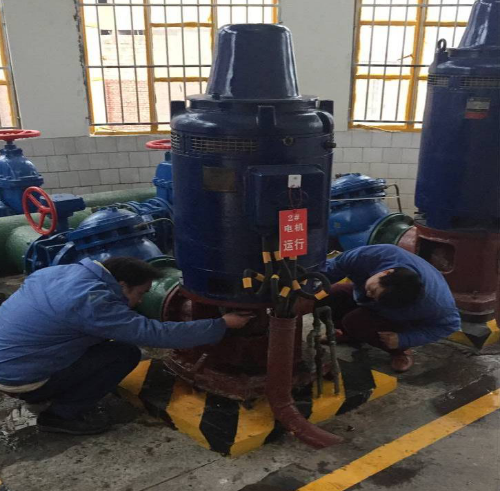 機修人員正對供水設(shè)備維修、保養(yǎng)