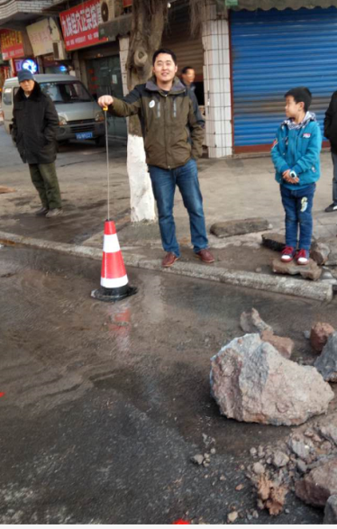 2017年1月13日下午,營銷部述職大會正如火如荼的進行著,16:20分查漏主管接到共產(chǎn)黨員為民服務(wù)大隊協(xié)助信息,江北紅豐西路葡萄園小區(qū)外管道損壞爆裂,需要探測管道漏水位置。