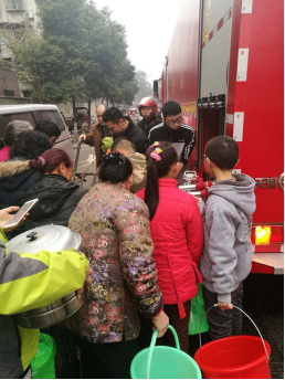時(shí)至中午,錦繡花園小區(qū)內(nèi),一輛消防送水車前排著長隊(duì),聞?dòng)嵹s來的居民們水桶、水壺齊上陣,載重25噸的消防車放完水后,依然有焦急居民在排隊(duì)等候,營銷部工作人員向他們承諾,第二趟很快就送來。隨即,書香府第、利民醫(yī)院、三江廠社區(qū)、陽光名城、葡萄園小區(qū)、紙機(jī)廠等多個(gè)地點(diǎn)都活躍著送水車的身影,緩解了居民們的燃眉之急。