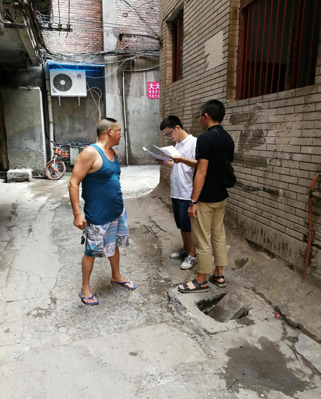 不出所料,當(dāng)筆者和查勘設(shè)計(jì)員們抵達(dá)西郊小較場(chǎng)附近,在用戶(hù)的帶領(lǐng)下穿過(guò)一片如迷宮般的老舊住宅后,一幢幾乎被各種裸露管線(xiàn)包裹著的老舊六層紅磚樓房終于出現(xiàn)在大家眼前。“這房子的水表箱確實(shí)有點(diǎn)破舊,而且天然氣管道就在水表箱旁邊,全是裸露的,看來(lái)需要增設(shè)新的水表箱。”負(fù)責(zé)該處查勘設(shè)計(jì)工作的查勘設(shè)計(jì)員羅翼林在查看該處房屋的管線(xiàn)分布情況后如是說(shuō)道,隨后他一邊聽(tīng)取用戶(hù)的介紹,一邊快速在紙上勾勒出該處戶(hù)表的分布情況,經(jīng)過(guò)和其他同事的現(xiàn)場(chǎng)探討,羅翼林很快向該用戶(hù)提出兩套戶(hù)表改造方案,用戶(hù)在和其他附近用戶(hù)商量后,最終確定選用第二套方案,查勘任務(wù)得以順利完成。